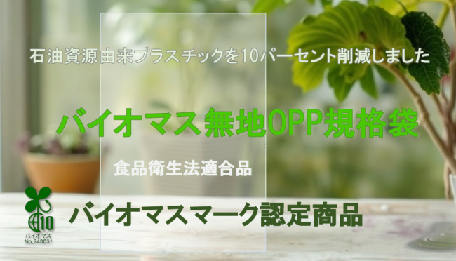 CO2削減バイオマス原料を配合したOPP規格袋です。