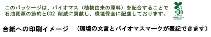 内容物台紙等にバイオマスマークを使用する事が可能です。